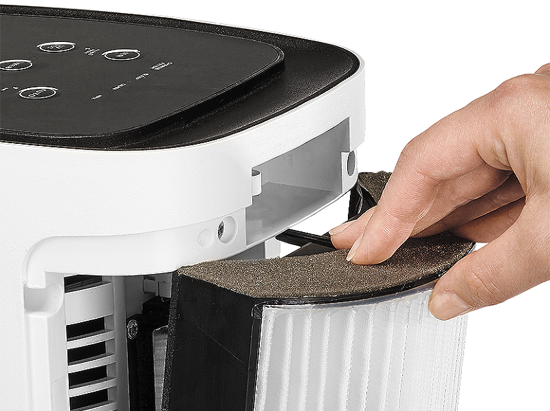 - Пре-фильтр очищает воздух от крупных фрагментов пыли, шерсти и других загрязнителей в доме;