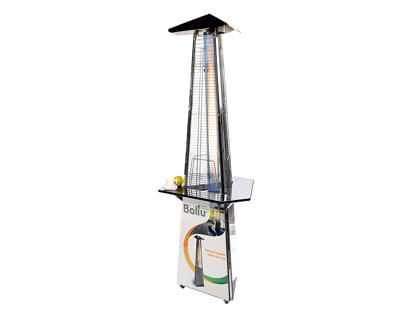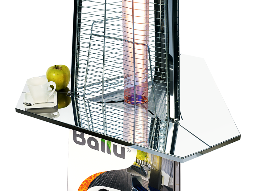 Столик разработан инженерами Ballu с учётом всех особенностей использования уличных обогревателей на летних верандах ресторанов и в уличных кафе.