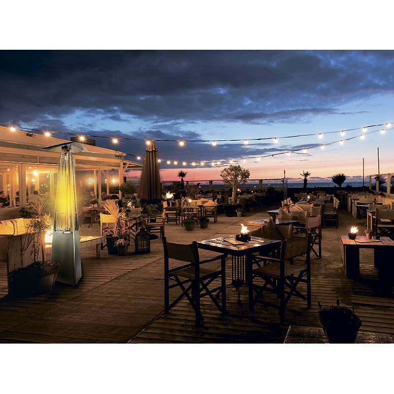Уличный газовый обогреватель Ballu BOGH-15 максимальной мощностью 13 кВт предназначен для обогрева площадок летних кафе, веранд, а также помещений беседок в загородных домах. В качестве источника тепла используется инфракрасное излучение от специально разработанных горелок при сжигании сжиженного газа (пропан, пропан-бутан). Направленный инфракрасный обогрев действует в радиусе до 2,5 метров, а эффект от нагрева напоминает теплые солнечные лучи. В прохладные осенние и весенние дни, а также в вечернее время данный прибор станет незаменимым помощником в создании теплого домашнего уюта даже если вы находитесь на улице.