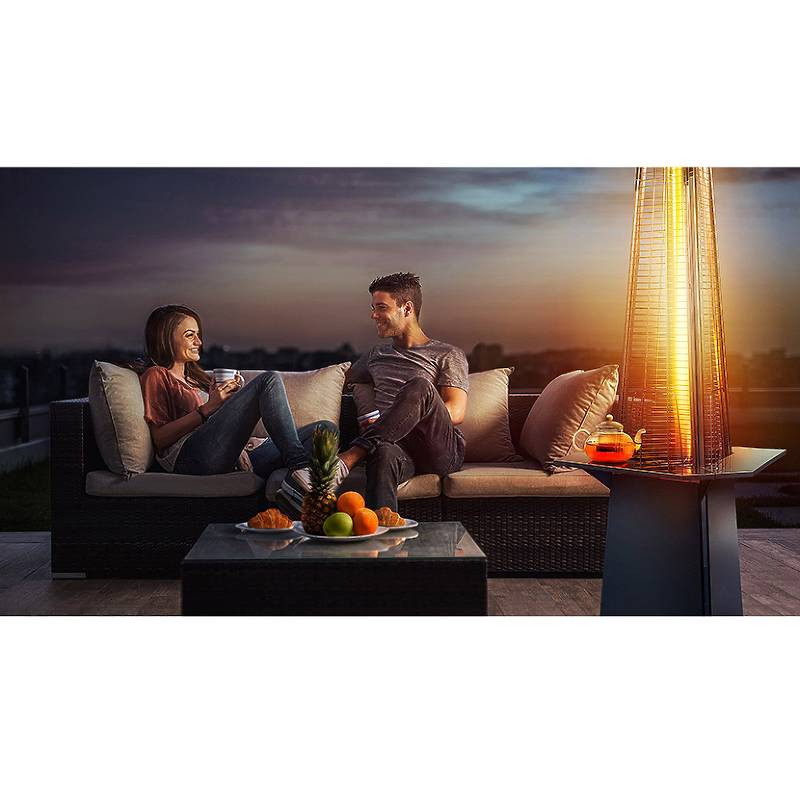 Это единственный прибор, способный в прохладное время эффективно обогреть площадь во все стороны вокруг себя радиусом до 2,5 метров. Общая же площадь обогрева составляет до 25 квадратных метров.