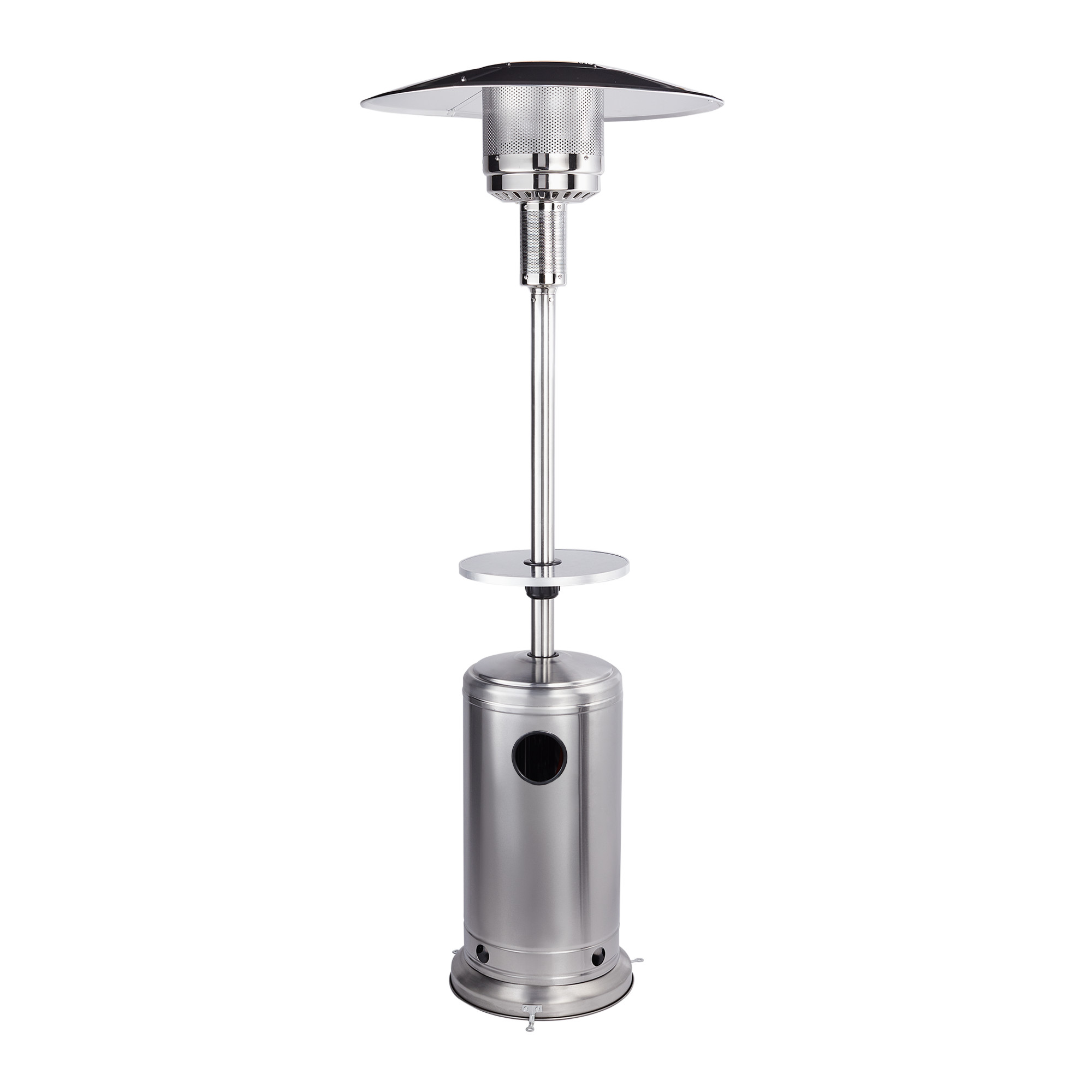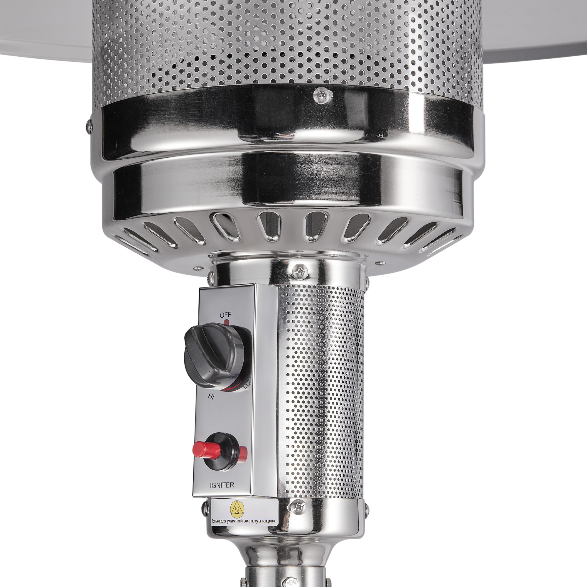 Простой и надежный газовый инфракрасный обогреватель направленного действия. Используется для обогрева на открытом воздухе, эффективная работа в радиусе 2 метров. Корпус изготовлен из нержавеющей стали, в том числе горелка и отражатель диаметром 810 мм. Розжиг осуществляется с помощью пьезоэлектрического пуска от батарейки. В корпус основания прибора помещается стандартный стальной баллон на 27 литров. Средний расход топлива составляет 0.7 кг/час.