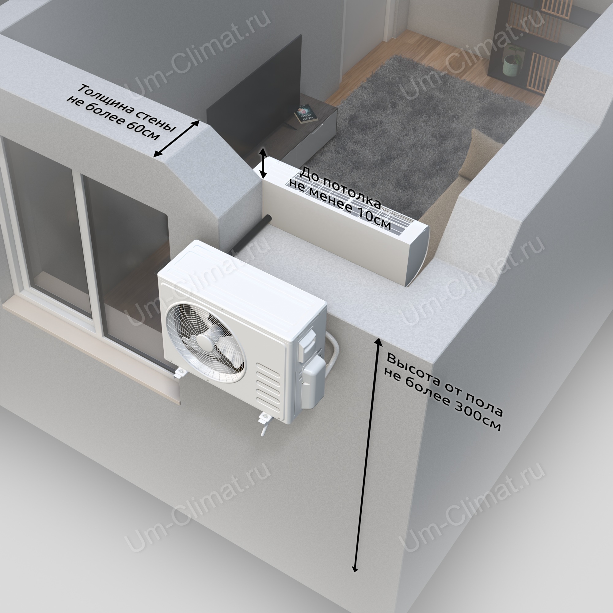 Установка кондиционера 07-09 (до 3,0 кВт) "прямой" - 1 этаж - Описание